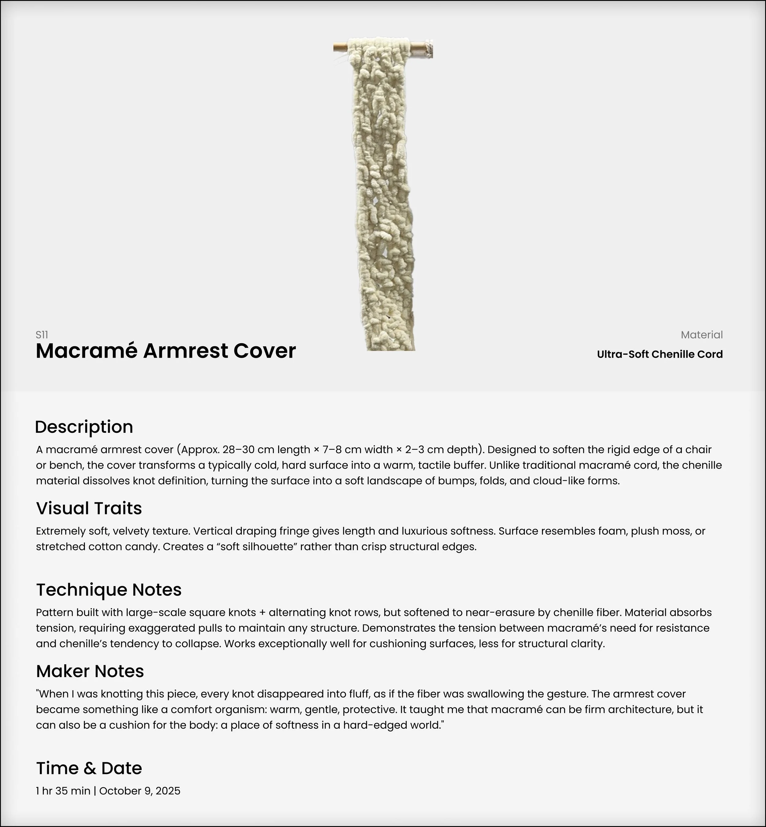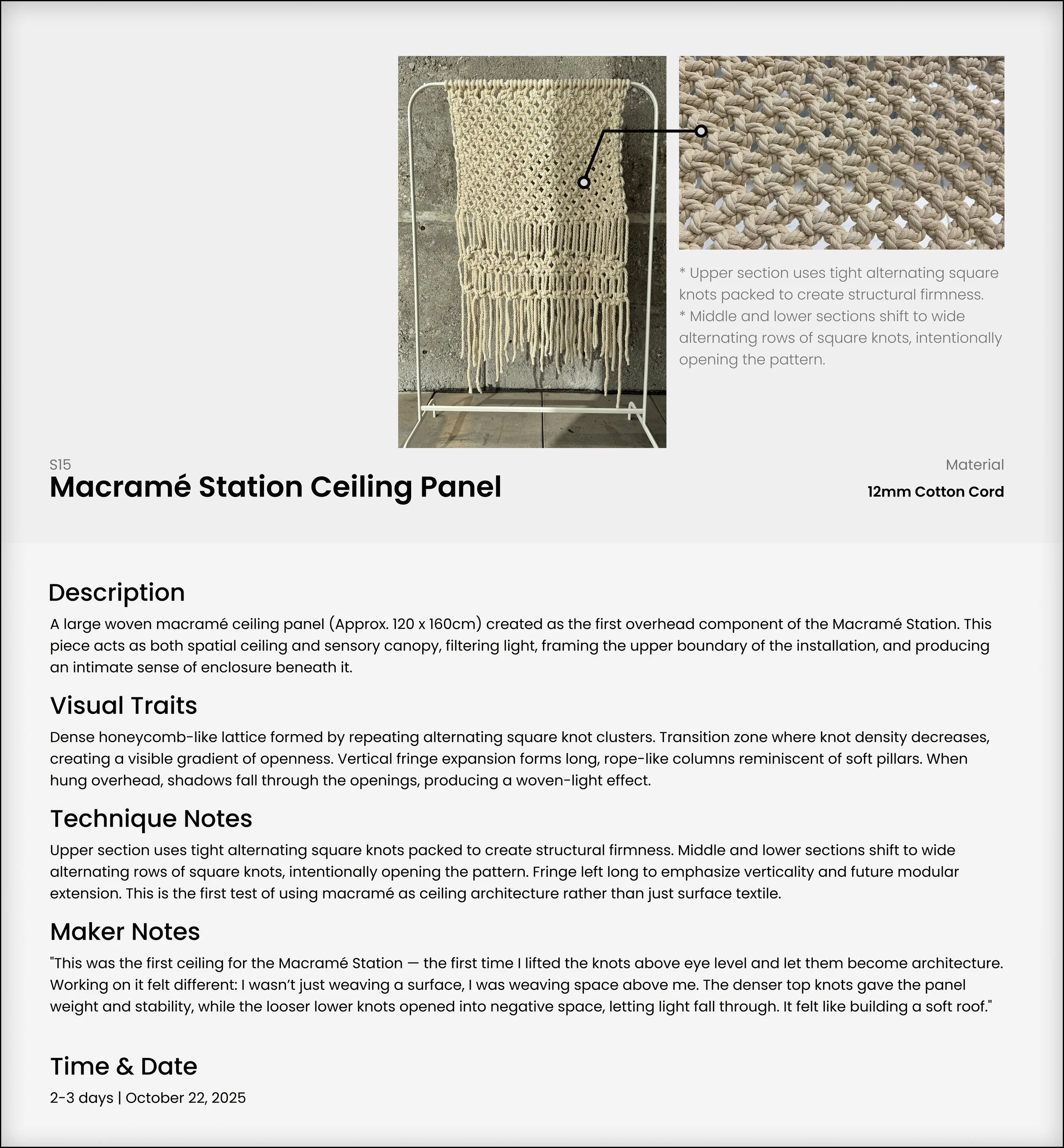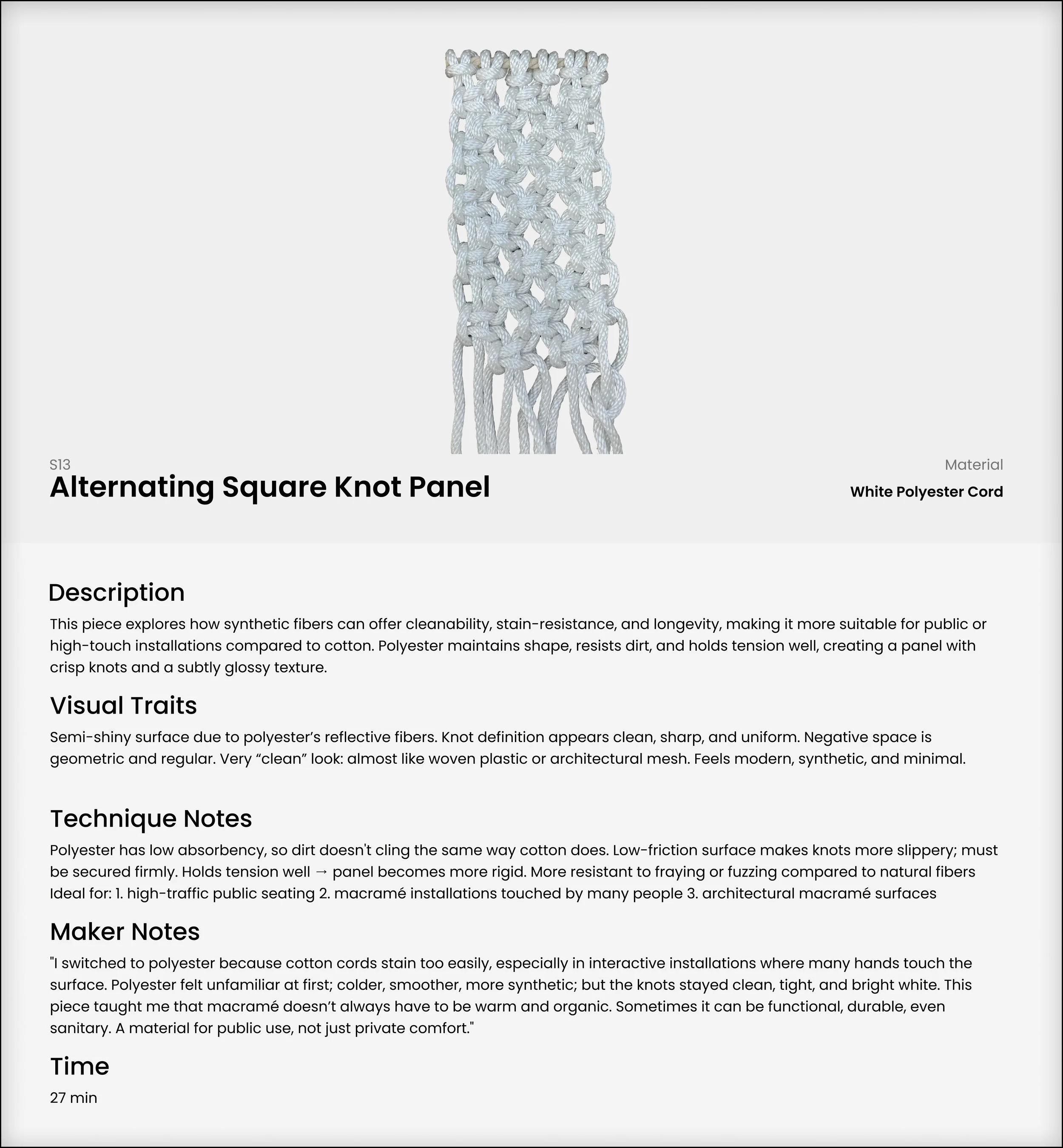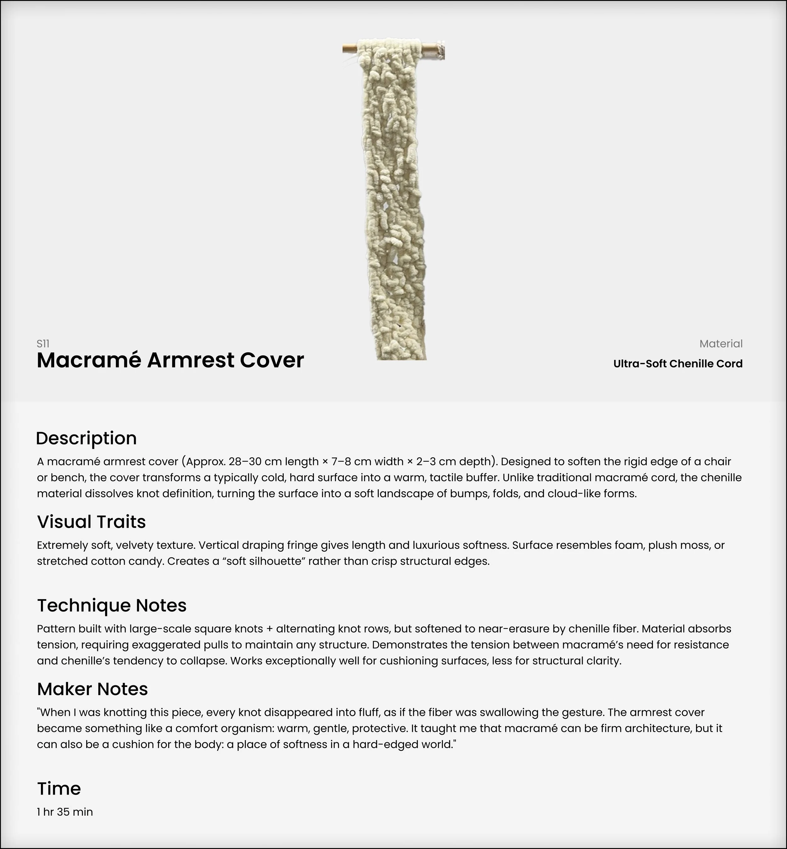 This is a digital sample catalog for the prototype 01: Makerspace - The Macramé Station.