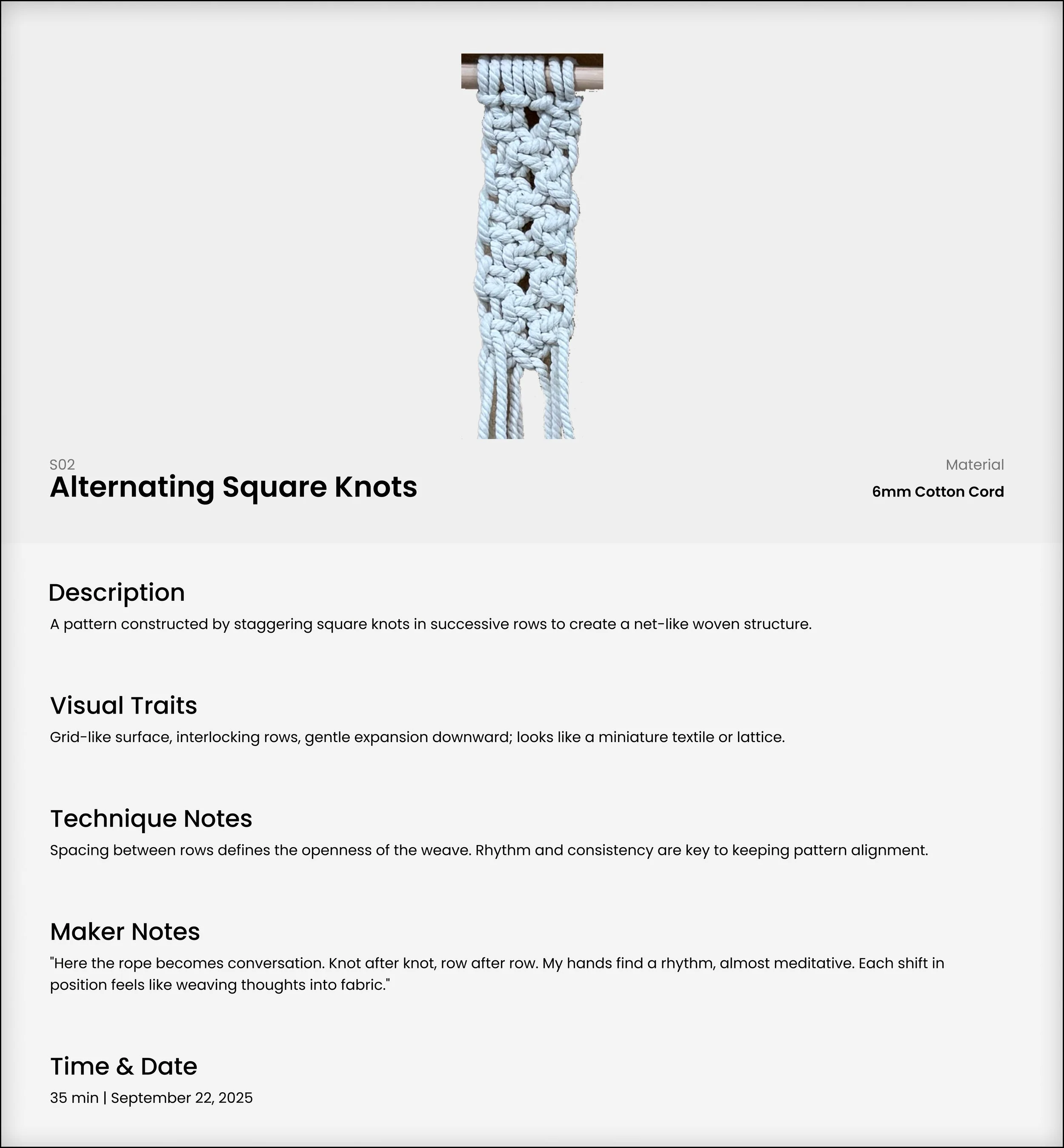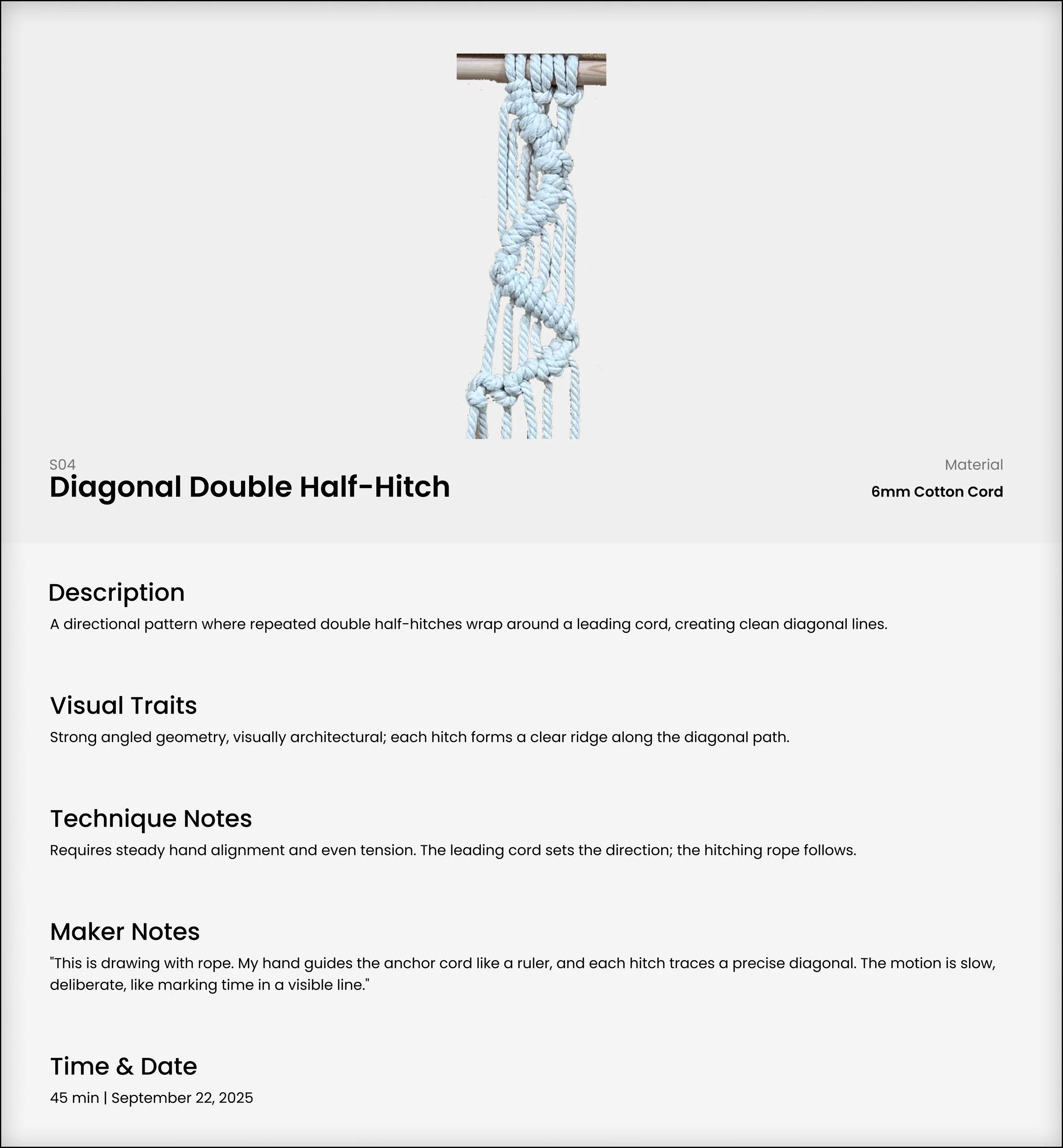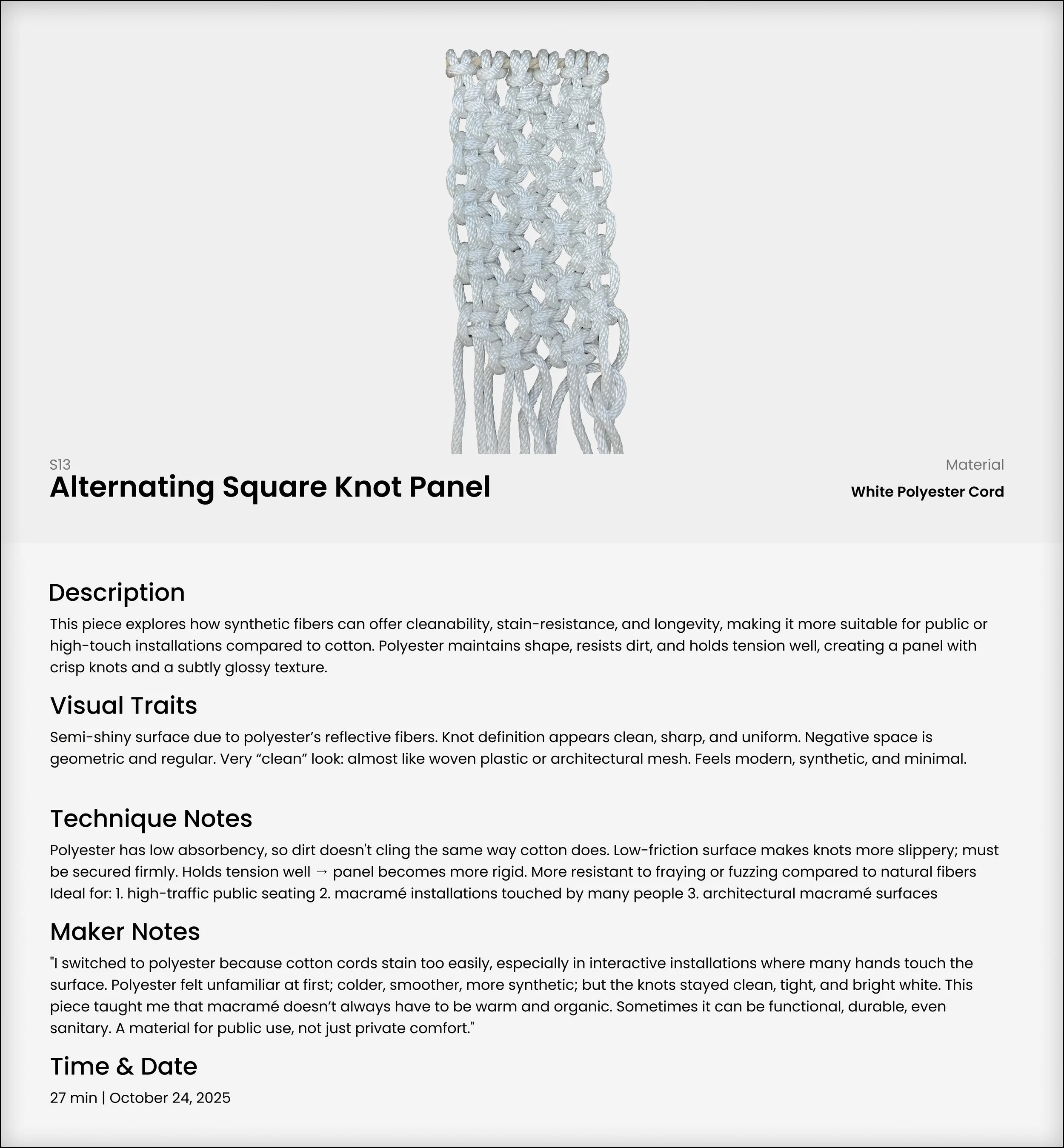 This is a digital sample catalog for the prototype 01: Makerspace - The Macramé Station.
