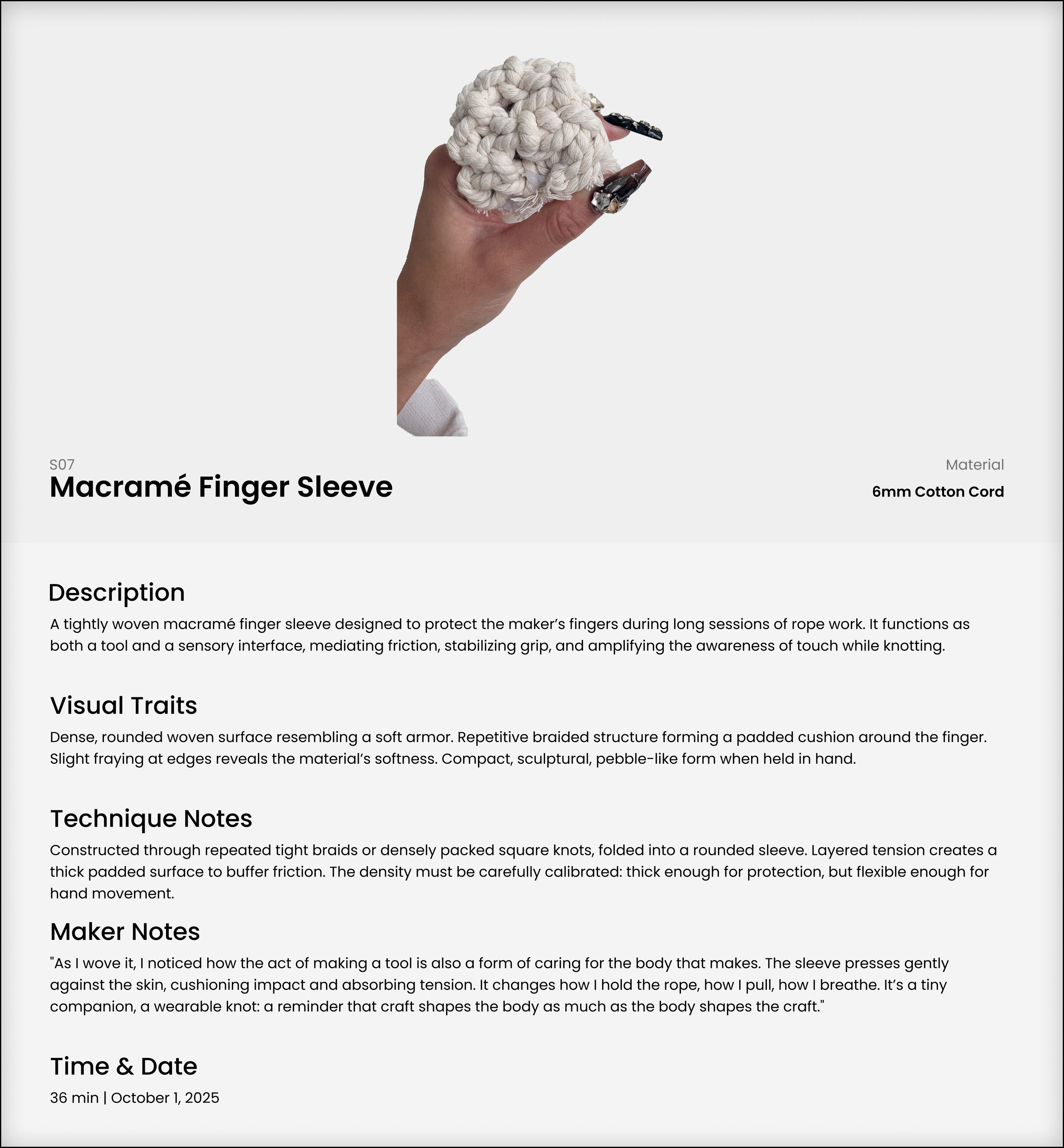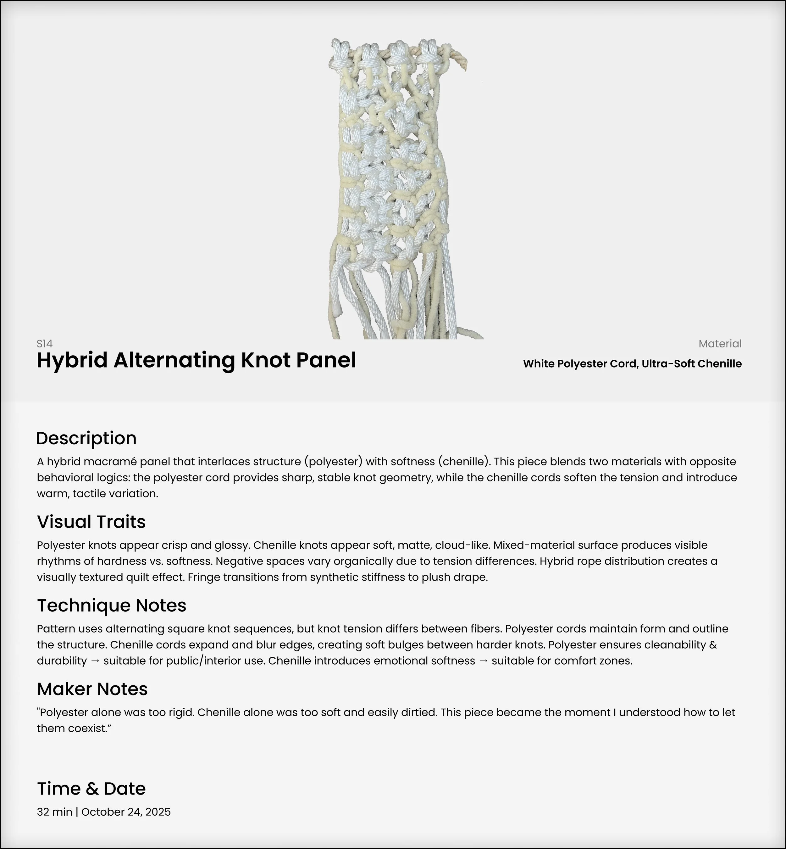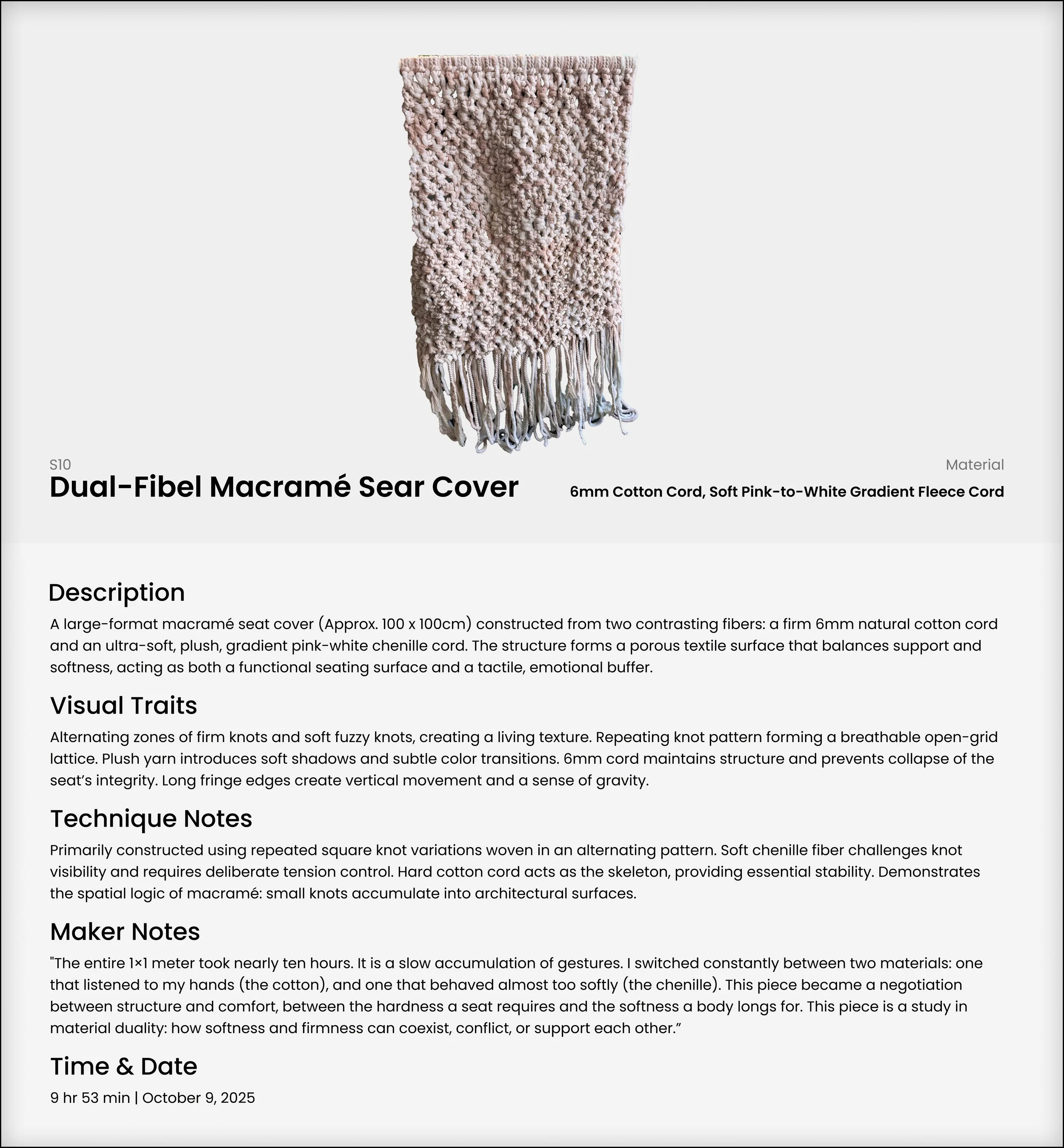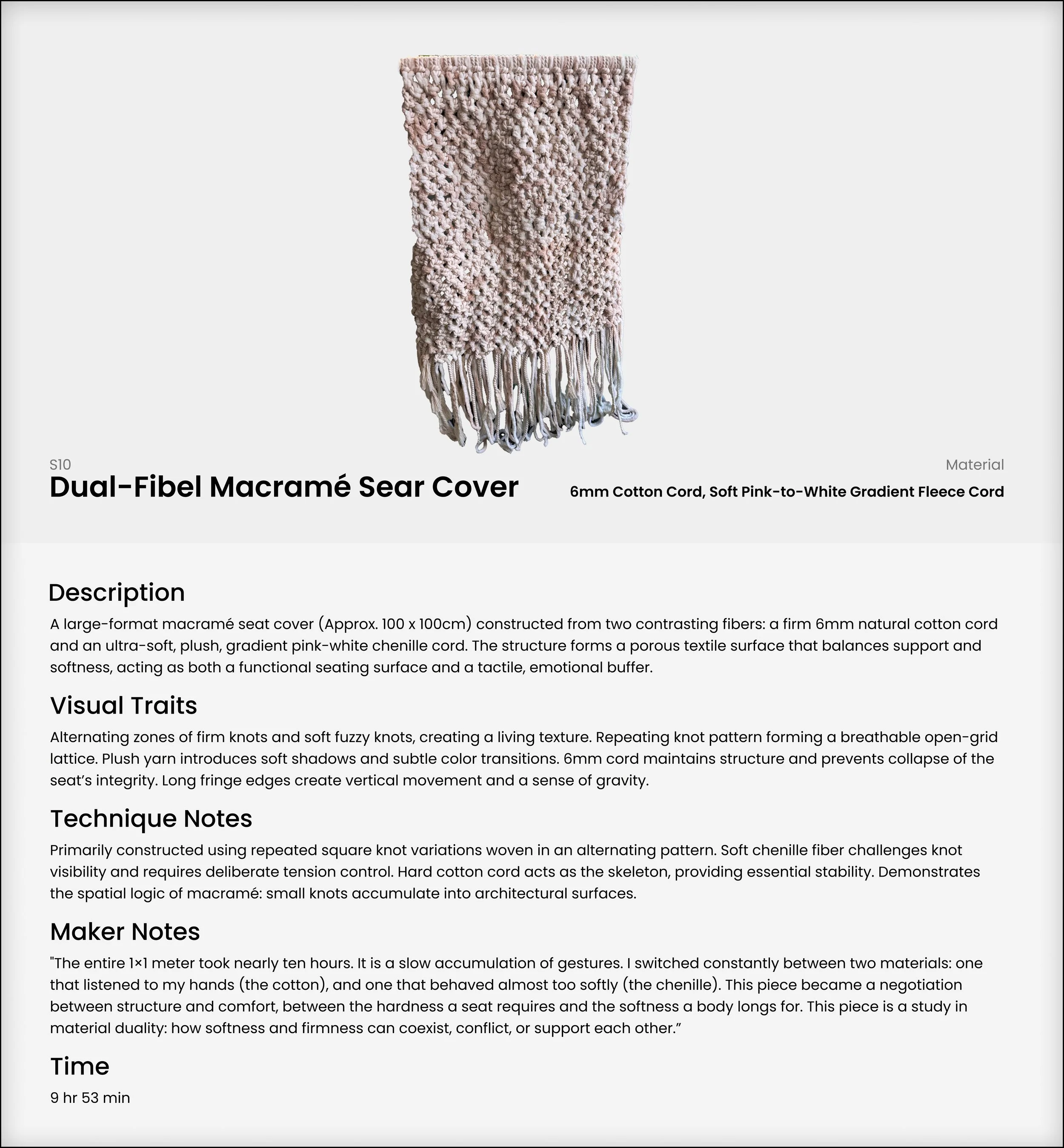 This is a digital sample catalog for the prototype 01: Makerspace - The Macramé Station.